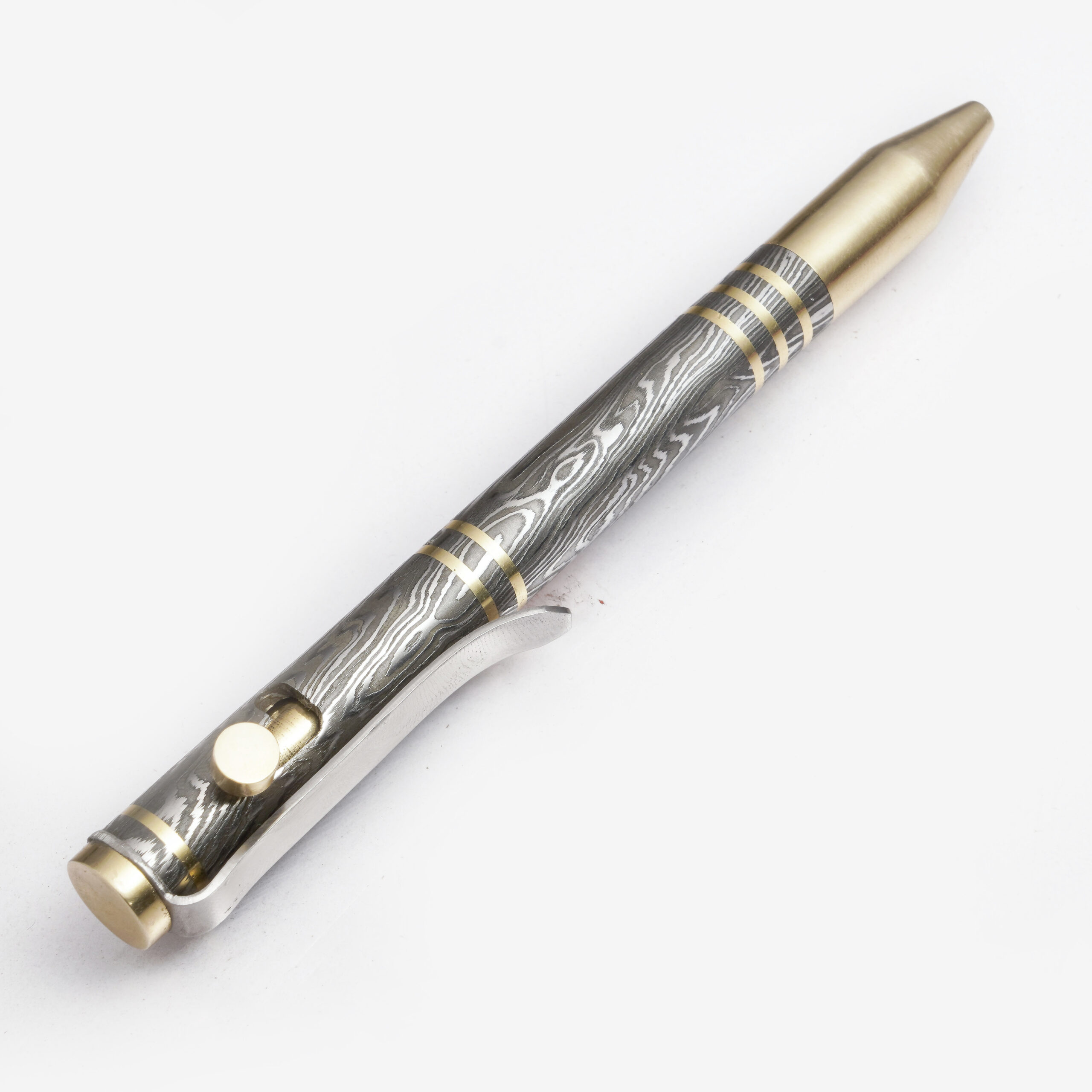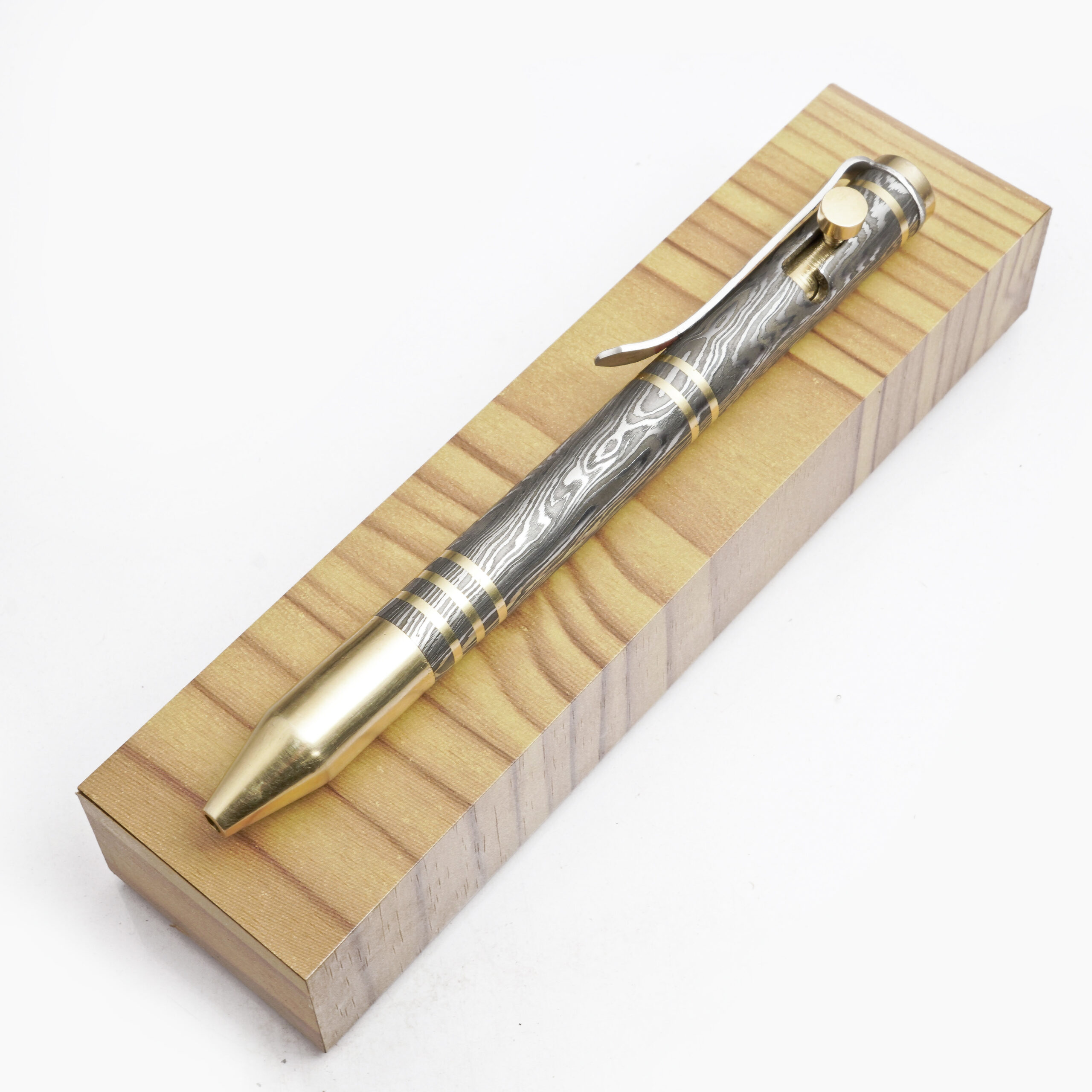 A premium Damascus steel ballpoint pen with a sleek design, refillable ink cartridge, and free wooden box—perfect for daily use or gifting.