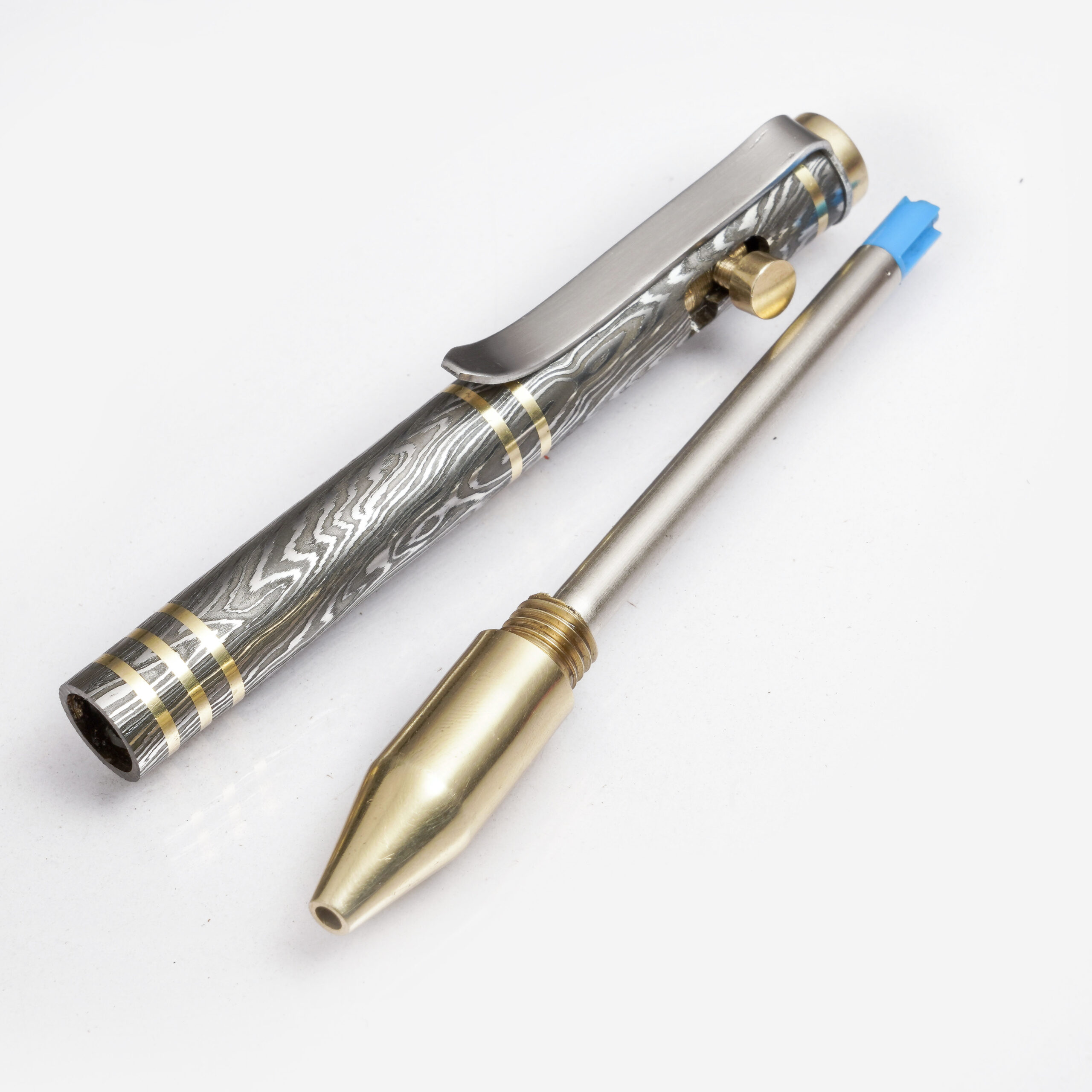 Crafted with precision and strength, the Damascus Ballpoint Pen combines function with art. Made from genuine Damascus steel, each pen features unique wave patterns that make every piece distinct. It’s fitted with a smooth-writing ballpoint cartridge and designed for easy refilling. The pen’s weight and balance offer a comfortable grip for everyday writing.